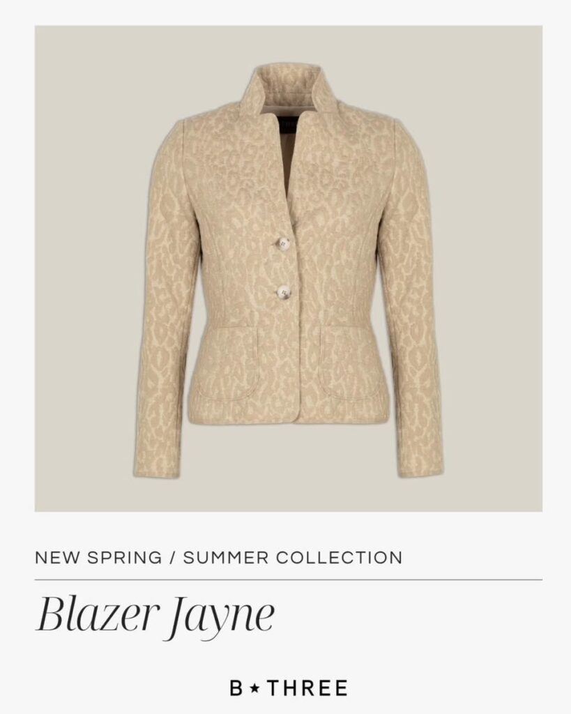 Dit jasje is van B*Three en heeft een subtiele all-over print. Het is een getailleerd model en heeft een mooie heuplengte. Ideaal om je outfit een stijlvolle upgrade te geven.