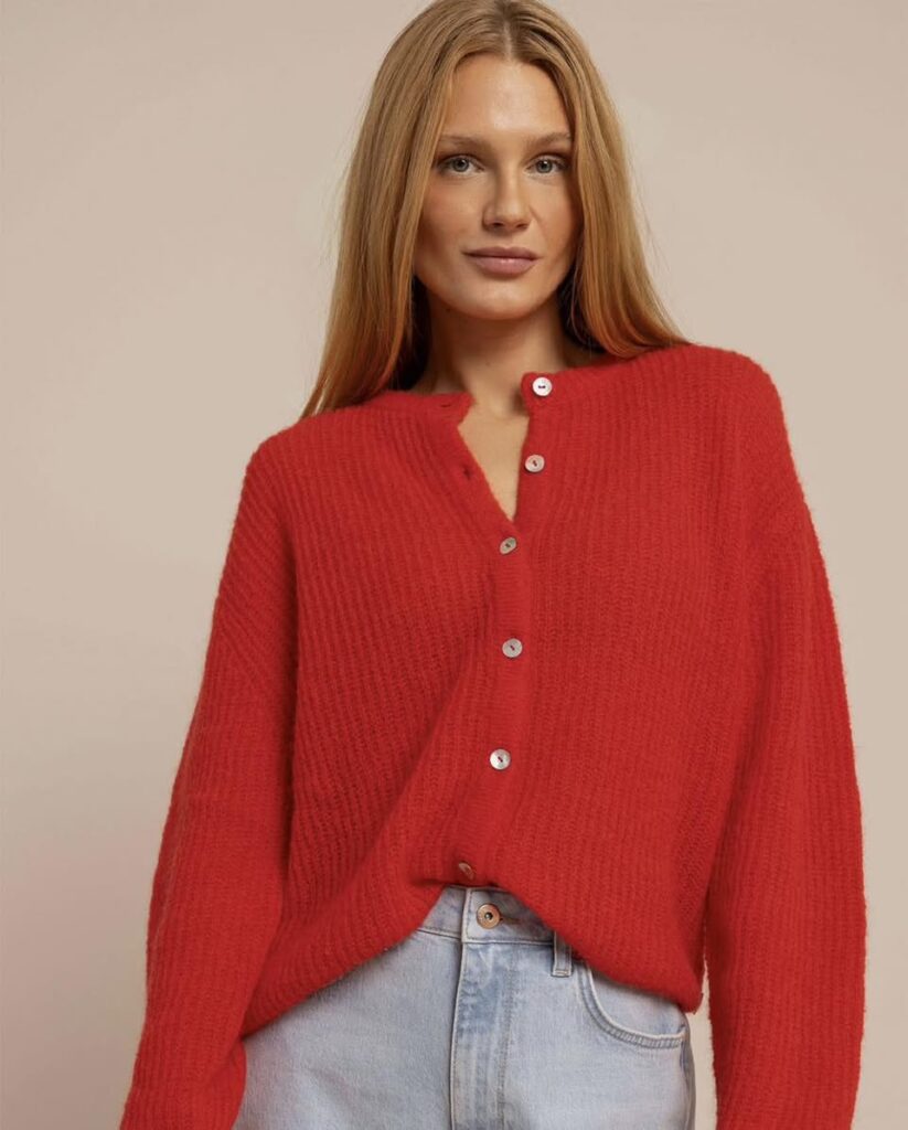 Perfect voor nu! Het bekende vestje van Studio Anneloes & een gebreide polo met verschillende gouden knopen in de prachtige koraal kleur.