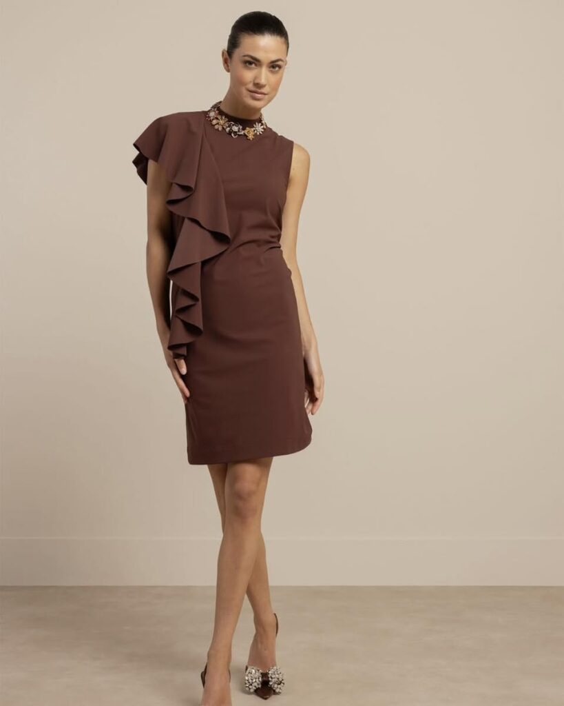 Vandaag deze stijlvolle jurk van Studio Anneloes! De jurk is mouwloos met een moderne twist en in een nieuwe bruine kleur genaamd chestnut. Met deze jurk is het iedere dag een feestje!