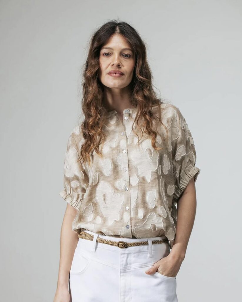 Deze blouse met reliëfmotief is van LabeL DOT! De mouwen hebben elastische boorden en de pasvorm is royaal. Het is een stijlvol item dat eenvoudig te combineren is, van casual tot gekleed!