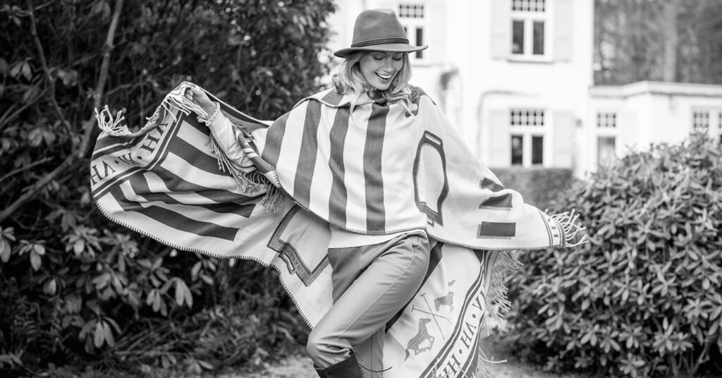 Deze omslagdoek is van HV Society en heeft de kleuren donkerblauw met beige. Je kan hem zowel binnen als buiten dragen én je kan je er lekker warm inwikkelen. Ideaal toch?