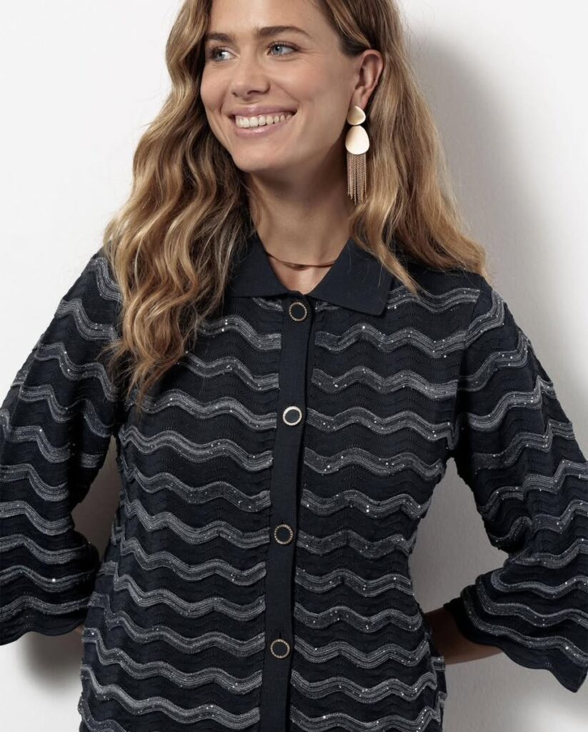 Dit subtiele glitter vestje in het antraciet is van Studio Anneloes! De elegante structuur, glinsterende details & vrouwelijke pasvorm maken dit vest ideaal voor feestelijke momenten, maar ook voor een stijlvolle dagelijkse look!