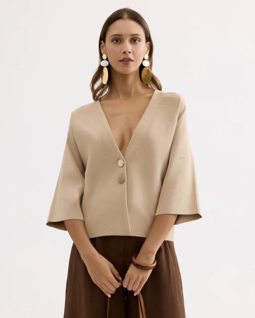 Dit luxe vest met driekwart mouw is van Leo & Ugo! Het heeft prachtige gouden knopen, een mooie V-hals en is gemakkelijk te combineren. Een echt zomers vest!