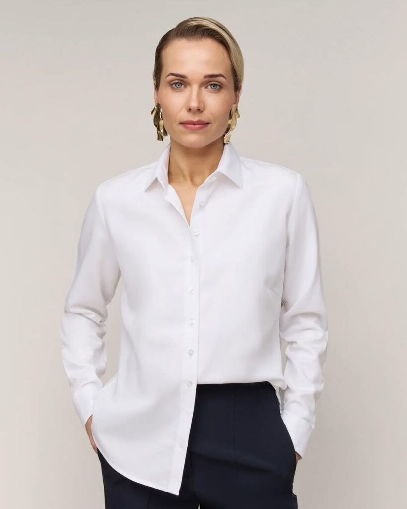 Dit merk biedt premium damesblouses van 100% katoen, ze zijn ademend, stijlvol & niet doorschijnend. Zowel in slim fit als in regular fit verkrijgbaar en in de kleuren wit, lichtblauw & roze. Ook met bijpassende accessoires!