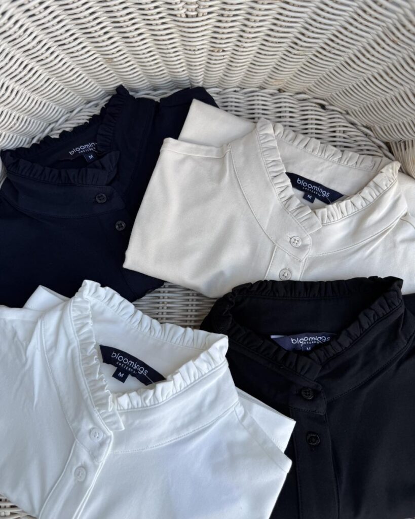 Deze handige blouses van Bloomings Amsterdam zijn er weer! Door het tricot materiaal draagt het comfortabel en je bent er ook netjes mee. Leuk om zo te dragen, maar ook straks ergens onder.