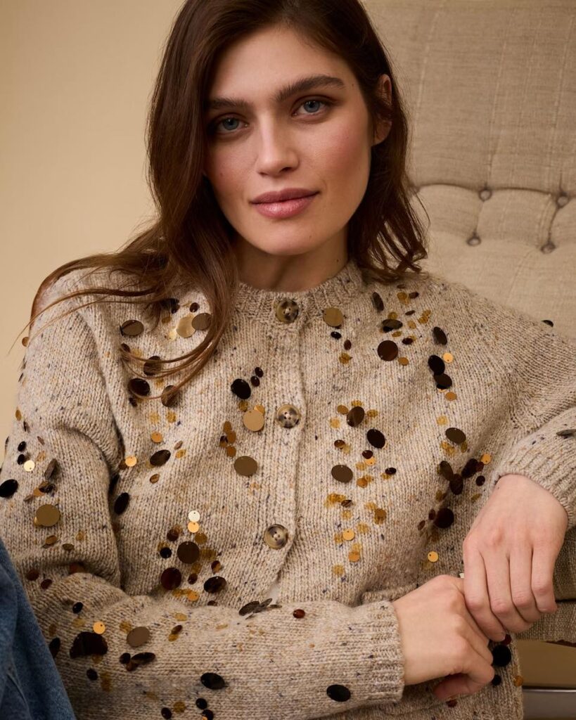 Wij beginnen de woensdag sprankelend met dit vestje van Oui! Door de verschillende groottes in pailletten krijgt dit vestje een speels effect. Een echte eyecatcher!